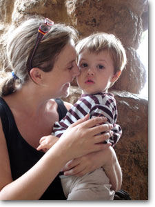 After the castellers, we all headed up to Parc Guell where we met Juls and her two year old son Charlie. We wandered around the park, listened to some nice jazz under a cavernous Gaudi bridge, counted the stairs to the tippety top of the park (in English, Spanish, Catalan, French, Italian, and Japanese), and took in the breathtaking view of the city while being lightly rained upon. The aforementioned rain caused us to cut our visit short so we bid a fond farewell to Juls and Charlie and the four of us headed back to our place.