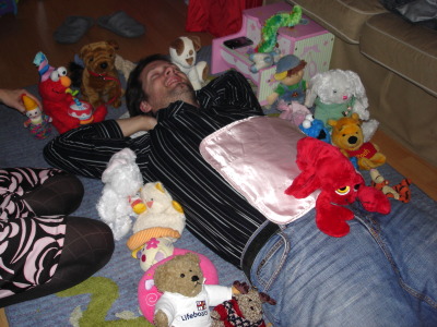 A bit of advice: If you mark the start a mammoth game of Risk with a Zamrycki Mudslide™, then quickly move on to the red wine, only to find yourself knocked out of the game before anyone else (even though you managed to secure Africa before anyone else had an entire continent), don’t be surprised if, after falling asleep on the living room floor, you wake up to find yourself surrounded by and underneath a throng of stuffed animals and sniggering “friends” with cameras.